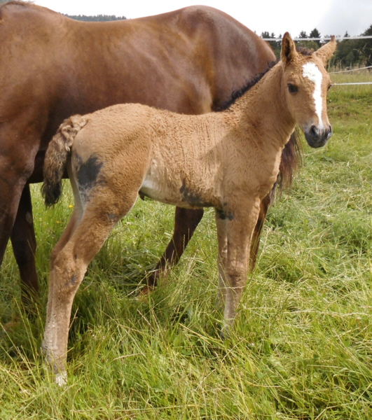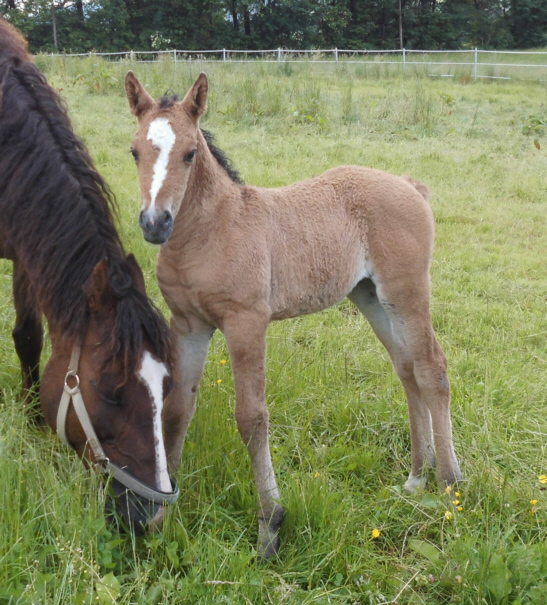 Am 22.04.2016 wurde MI Dream of Wonder geboren aus Fancy's Half Moon von Sundown Cowboy. Ein klasse Fohlen mit kräftigen Knochen und wunderschoner Farbe - ein grullo, ob mit oder ohne silver wird der Gentest zeigen. Falls ohne Silver wollen wir ihn als zukünftigen Deckhengst behalten | |